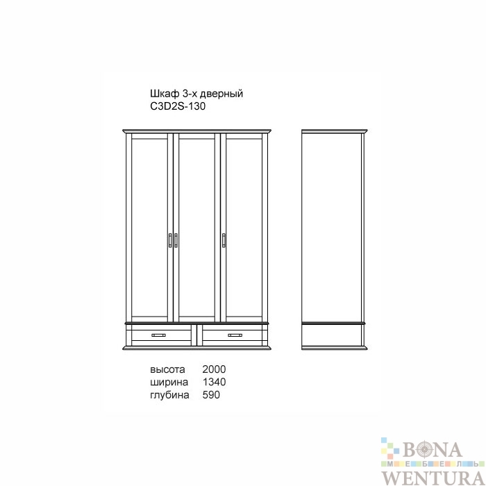 BED-90 Skipper Кровать 90 Высота 990 мм Глубина 2085 мм Ширина 995 мм C3D2S-130 Skipper Шкаф 3х дверный нижними выдвижными ящиками Высота 2000 мм Глубина 590 мм Ширина 1340 мм KOM2S-50 Skipper Тумба прикроватная на два ящика Высота 475 мм Глубина 600 мм