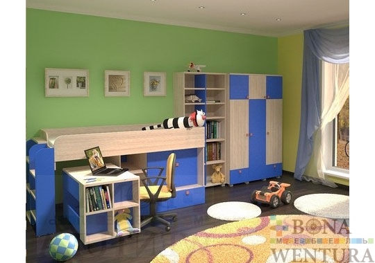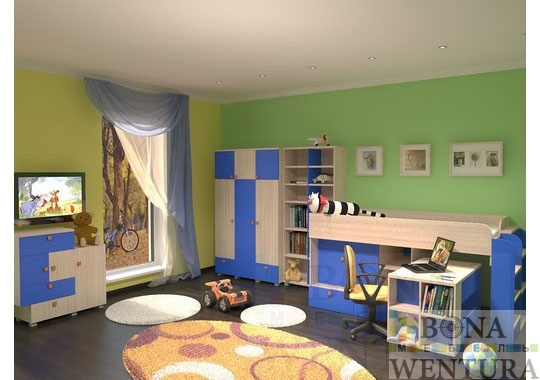 Детская мебель для мальчиков «Алладин — BOY» реализует желания будущего мужчины, она не только преобразить комнату по желанию и финансовым возможностям, но и сделает ее жизнерадостной, яркой и уютной. Комплектация моделей детской мебели, позволит создать стильный и комфортный интерьер, вызовет желание находиться в этой комнате, учиться чему то новому, общаться с друзьями и просто приятно проводить время и отдыхать. Мебель для детской нашего производства экологически безопасна для здоровья детей, все используемые материалы сертифицированы. Продуманны детали и элементы травмобезопасности: конструктивные особенности каждой модели с точки зрения эргономичности и удобства, безопасные ручки, скругленые углы. Детская мебель «Алладин — BOY» не только современная и красивая, она еще качественная и прочная, по техническим характеристикам достойная замена импортной мебели, но с наименьшей ценой. В комплект входят: Кровать-трансформер, Шкафная группа на 3 отделения, Стеллаж на 6 секций, Шкаф-комбинированный с выдвижными ящиками и распашными дверями; Срок поставки: под заказ. Производство: Россия, BONAWENTURA. Гарантия: 3 года. Цветовое исполнение:* Синий Выбеленное дерево ЛДСП Lamarty * Цена изменится в зависимости от материала Конструктивные особенности: •Материал: сертифицированная высококачественная ламинированная ДСП «Lamarty», экологически-чистая плита с классом эмиссии Е1; •Кромка: PVC толщина 2,0-0,4 мм — Doellken (Германия); •Столы: столешница толщина 26 мм и опоры толщина 16 мм; •Шкафы и тумбы: топы толщина 26 мм; •Каркасы шкафов, тумб и остальные элементы: толщина 16 мм; •Направляющие для ящиков: шариковые; •Ручки: резиновые, фирмы «GTV» безопасные и яркие; •Соединительная фурнитура: эксцентриковая стяжка 2-х компонентная, с заглушкой, для прочных и надежных конструкций. •Упаковка: позволит мебель транспортировать на любые расстояния без риска деформации. •Исключительность: качество исполнения! распашные двери и выдвижные ящики укомплектована доводчиком, что обеспечит бесшумное и мягкое закрывание; задняя стенка ЛДСП 16 мм (не ДВП)-это обеспечивает конструкцию долгую жизнь и безупречный внешний вид; **Внимание! Компания BONAWENTURA оставляет за собой право внесения изменений и дополнений в текущий прайс-лист, связанных с изменениями линейки продукции и коньюктуры рынка — без предварительного уведомления.