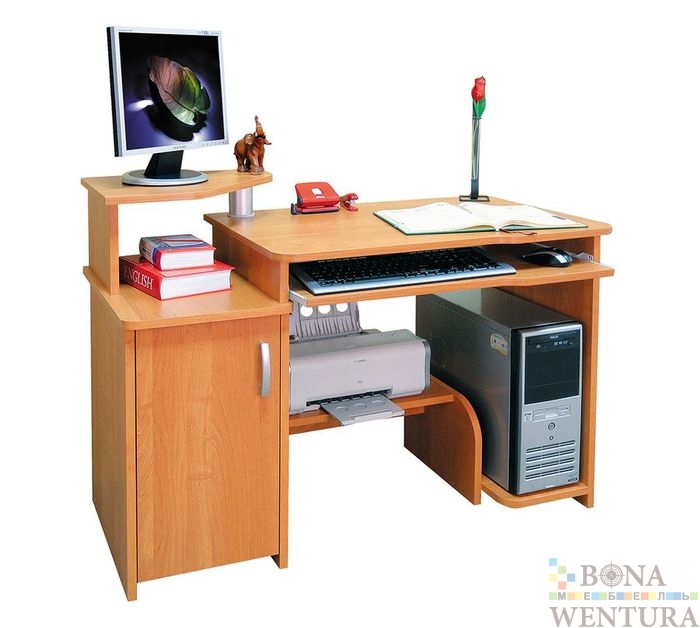 Компьютерный стол — удобное и оригинальное решение вопроса размещения компьютера и всего сопутствующего оборудования на любой площади и в любом интерьере — будь то детская, кабинет, жилая комната, кухня. Ограничений нет! Компактный компьютерный стол с выдвижной панелью под клавиатуру.