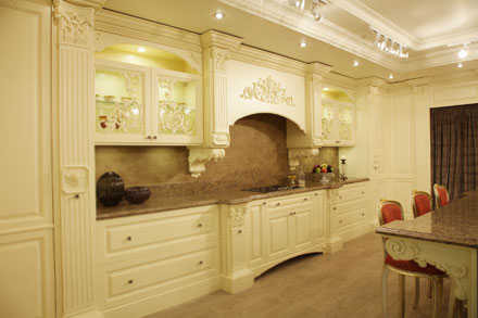 Кухня Петра — воплощение идеала для поклонников классической архитектуры. В ней органично сочетаются коринфские колонны, барочные вензеля и античные орнаменты. Все декоративные элементы убедительно подчеркивают высокий статус данной мебели, ее благородство и изысканность. Многие декоративные детали кухонь «Петра» выполнены вручную, что вызывает еще больше восхищения. Для каждого отдельного заказа они заново прорисовываются, а после того, как заказчик выбирает вариант изготовления, эскизы передаются мастерам.