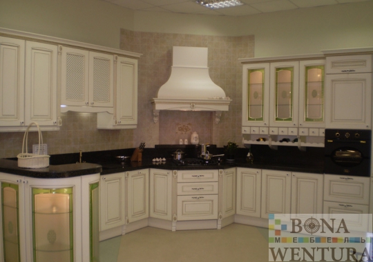 Толщина и массивность дверных фасадов подчеркивается углубленными порталами и узкими витринами, украшенными резными орнаментами. Кухонные модули обособлены колоннами, являющимися атрибутом стиля. Композиции строятся от центра, которым обычно выступает плита, симметрично, согласно строгим классическим канонам. Все выглядит очень солидно и дорого! Всё начинает играть в духе зимнего дворца, обречённый красотой на века. Матовые стёкла словно тонкие льдинки престижно гармонируют с необыкновенными узорами фасадов. Дворец мечты на котором каждая женщина желает почувствовать себя королевой. Интерьер выполнен в добротном стиле классики.