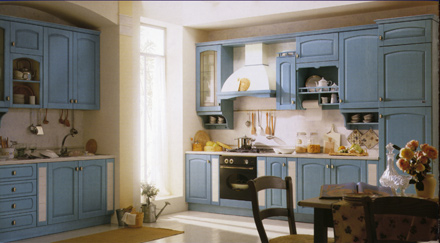 Фасады выполнены из массива дуба со шпонированным рустом. Необычное цветовое решение для натурального дерева - сочетание нежного голубого оттенка с чистыми белоснежными вставками делает данную модель особенно изысканной. Утонченный и сдержанный силуэт модели придется по вкусу поклонниками современной мебельной классики.