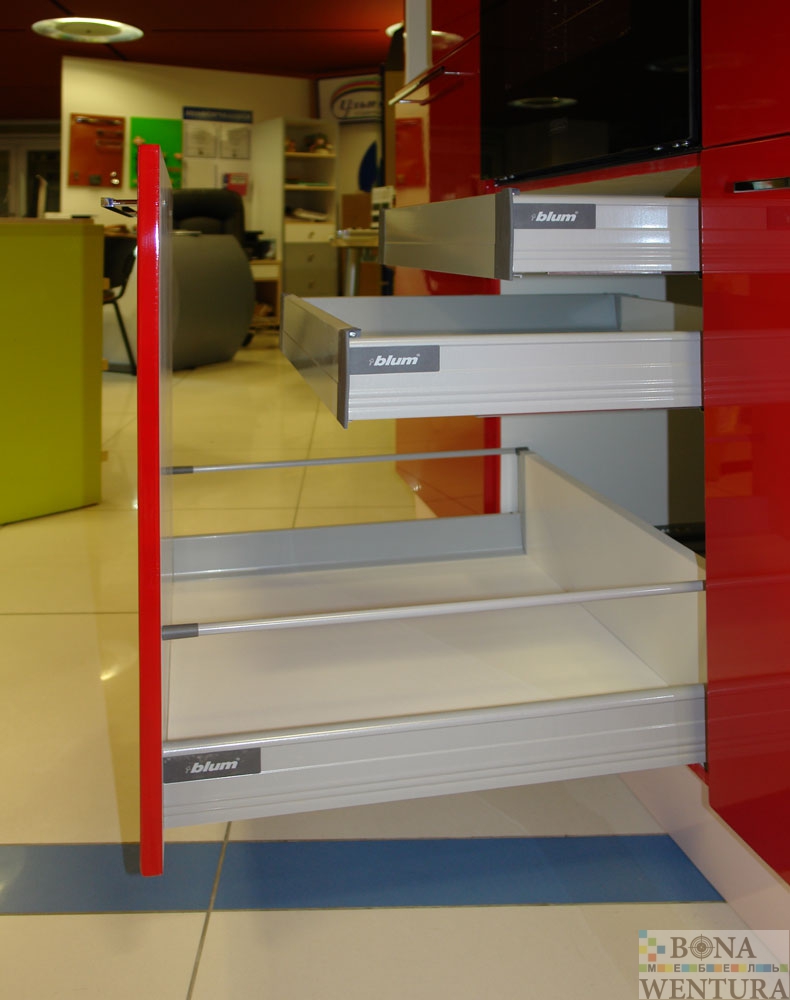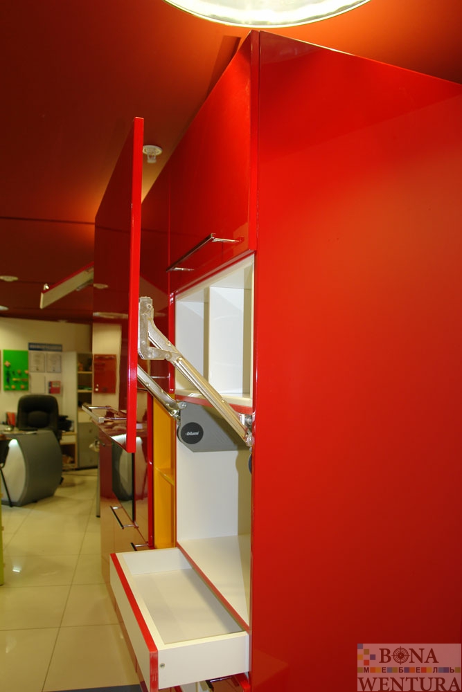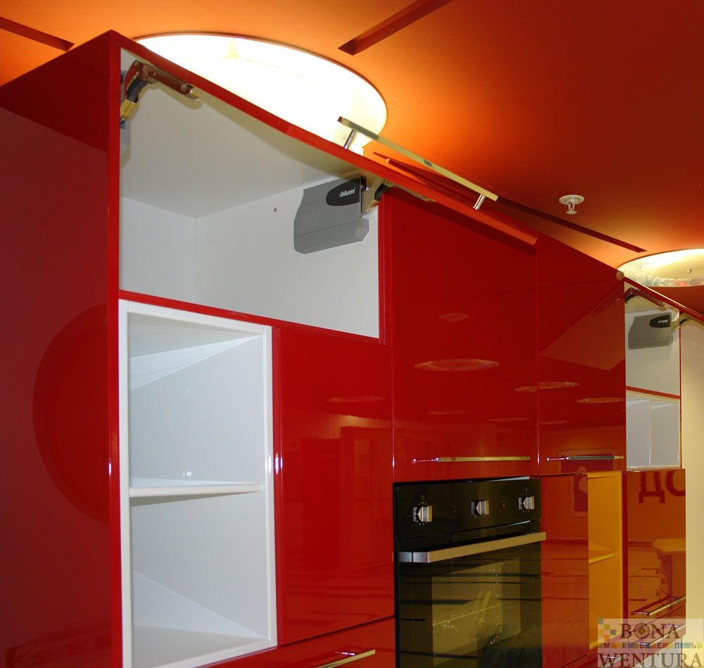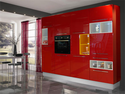 Кухня красная с глянцевыми фасадами