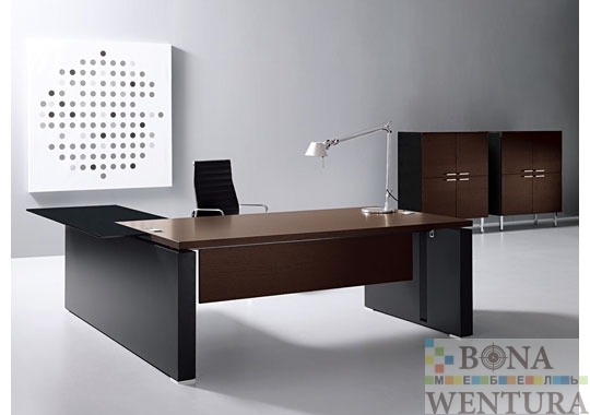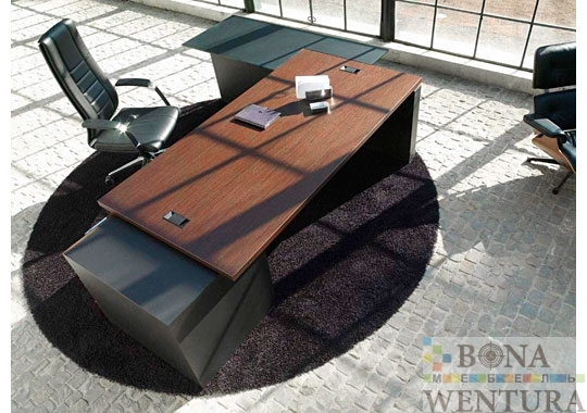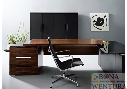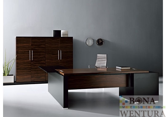 Необходимые для любого современного офиса технические элементы гармонично вписываются в общий дизайн кабинета. Шпонированная столешница цвета эбони безупречно сочетается с прямоугольными хромированными заглушками для проводки и элегантными черными боковинами с кабель-каналом внутри. Стоимость комплекта: 9468 € В цену комплекта входят: стол письменный, приставка, тумба, шкаф и гардероб. Цветовое исполнение:* * Цена изменится в зависимости от материала Эбони Черный (каркасы тумб и шкафов) Конструктивные особенности: Столешница: Покрытие — шпон Материал — ДСП Толщина ДСП — 39 мм Столешница приставки: Материал — ДСП Толщина ДСП — 12 мм Опоры: боковины из тамбурата толщиной 10 см черного цвета Передняя панель: шпонированная ДСП толщиной 19 мм Шкафы: шкафные композиции Armadi Столы для переговоров:120×120 и 220×120 см Кофейный стол: Материал каркаса и столешницы — шпон Производство: Sinetica (Италия) *Внимание! Компания BONAWENTURA оставляет за собой право внесения изменений и дополнений в текущий прайс-лист, связанных с изменениями линейки продукции и коньюктуры рынка — без предварительного уведомления. *Цены являются ориентировочными, и не являются публичной офертой.