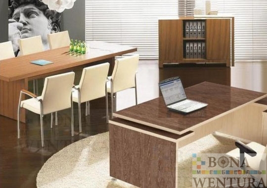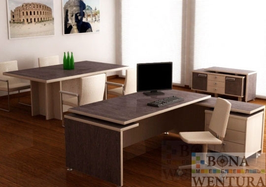 Стол для переговоров FINN эта модель из уникальной коллекции кабинета руководителя FINN, конструктивная модель с представительным внешним видом — обращает на себя внимание. Прямоугольный стол переговоров с фигурными опорами, выполнен следуя модным тенденциям, в нем умело скомбинировано два необыкновенно красивых цветовых решения. Качество исполнения, обеспечит на долгие годы высокие эксплуатационные характеристики. Срок поставки: под заказ Производство: Россия, BONAWENTURA Гарантия: 3 года Цветовое исполнение:* Дуб Марсала+Сосна Лоредо Дуб Аутентик+Зебрано песочный Дымчатый дуб+Вишня Виктория * Цена изменится в зависимости от материала Конструктивные особенности: • Материал: сертифицированная высококачественная ламинированная ДСП Lamarty и EGGER • Вариант столешницы: прямоугольная. • Столешница: толщина 32 мм, противоударный кант ПВХ 2,0 мм. • Опоры: фигурные, толщина 32 мм, противоударный кант ПВХ 2,0 мм. • Остальные элементы: толщина 18 мм, противоударный кант ПВХ 2,0 мм. • Эксцентриковая стяжка: обеспечит максимальную прочность и позволит многократный демонтаж мебели. • Регулируемые опоры столов: для устойчивости на неровном полу. • Упаковка: позволит мебель транспортировать на любые расстояния без риска деформации. Исключительность: оригинальная конструктивная модель в двухцветном исполнении, отвечающая функциональным и эстетическим требованиям.