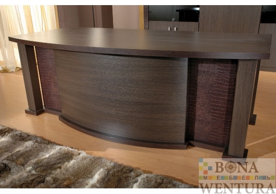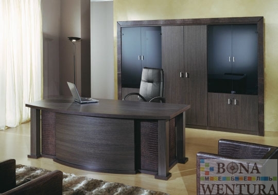Модный кабинет Positano- это концептуальный классицизм, ему присущ элегантный дизайн и высокий класс современного стиля. Изящество отделки панелей под крокодиловую кожу и строгие массивные формы представляют Вашему вниманию ощутимое качество и новаторские очертания. Отличительные черты кабинета Positano- высокая функциональность, роскошный внешний вид и современный дизайн. Стоимость комплекта: 4497 € В цену комплекта входят: стол письменный, приставка, тумба, шкаф и гардероб Цветовое исполнение:* Венге Кожа * Цена изменится в зависимости от материала Конструктивные особенности: • Столешница: • Покрытие — меламин • Толщина — 38 мм • Кромка — АBS (пластиковое противоударное покрытие) • Опоры: деревянные боковины с кожаными накладками • Шкафы: шкаф для бумаг и гардероб высотой 200 см • Столы для переговоров: составные Производство: Point Export (Италия) *Внимание! Компания BONAWENTURA оставляет за собой право внесения изменений и дополнений в текущий прайс-лист, связанных с изменениями линейки продукции и коньюктуры рынка — без предварительного уведомления. *Цены являются ориентировочными, и не являются публичной офертой.
